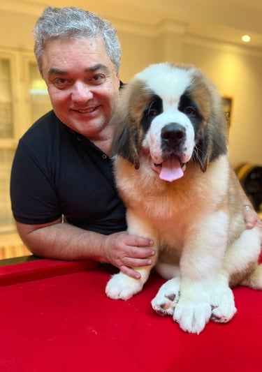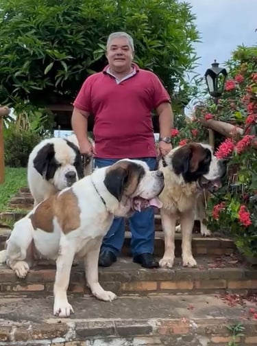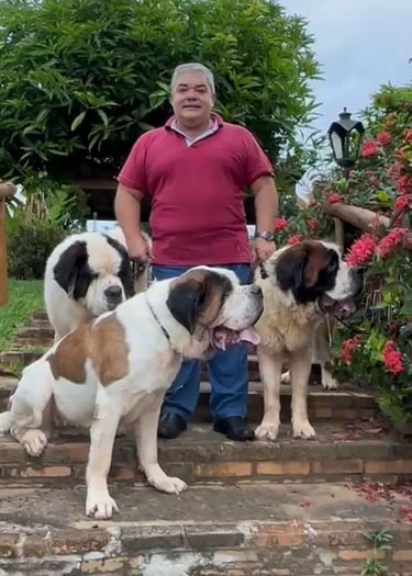 My passion for the São Bernardo began when I still lived in Sorocaba, in 1982/3, going to school on foot, a Beetle parked near me and a man got out and opened the passenger door and I saw that huge dog getting out of the Beetle and almost It didn't fit inside. That image was engraved in my memory. I said to myself: one day I will have a Saint Bernard.